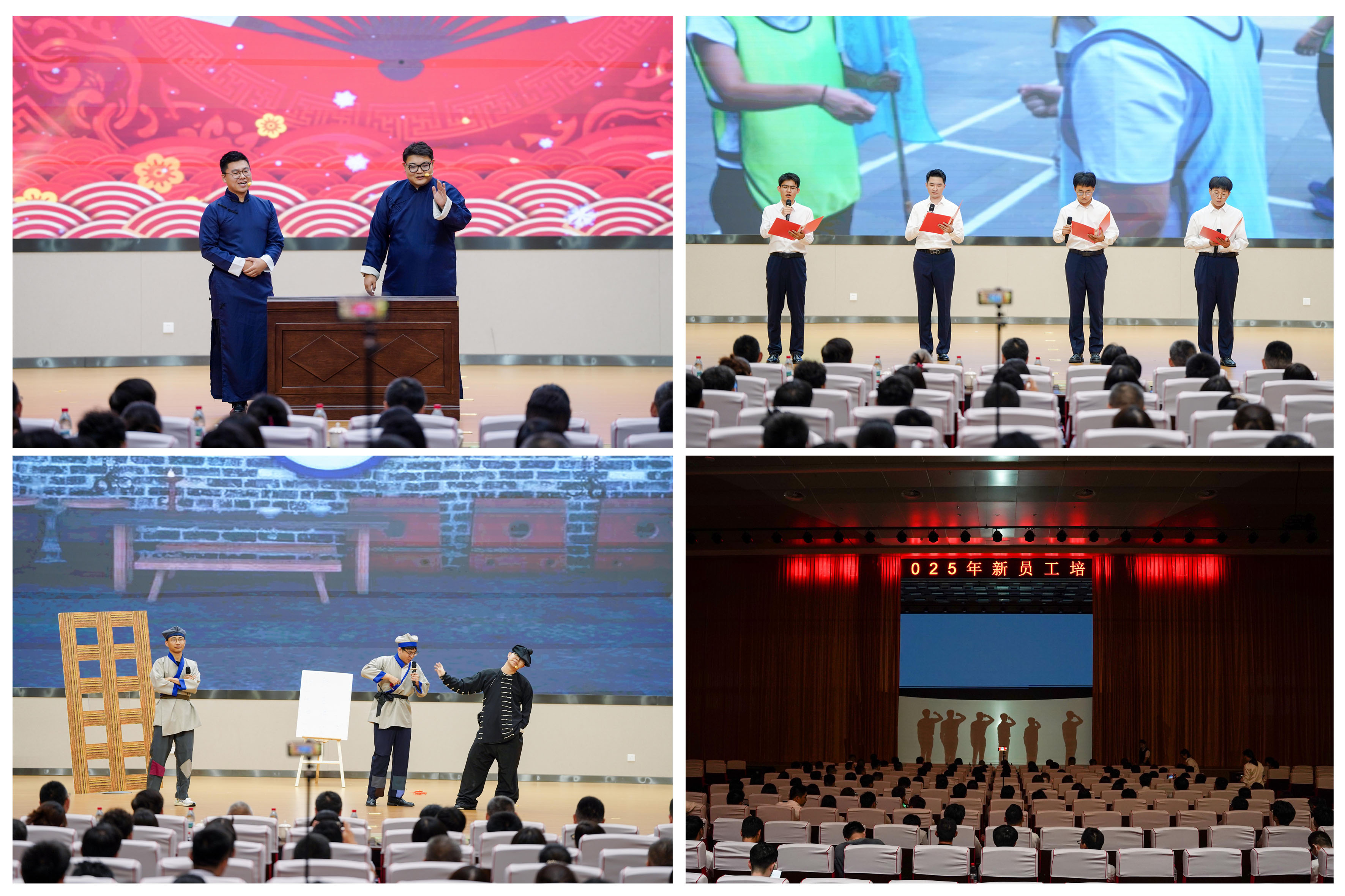 鼓点铿锵,灯光璀璨,一段激情舞蹈拉开三亿电子在线(中国)有限公司官网新员工结业典礼序幕。歌声、小品、相声等节目轮番登场,竹笛与唢呐的悠扬高亢更添风采,在导演组精心指导下,新员工们以饱满状态绽放青春活力,尽显电建青年的蓬勃朝气与奋进姿态。小品《夏日老友记》与相声《住哪》凭借诙谐的语言、逗趣的演绎和充满巧思的台词,引得台下笑声连连、掌声不断;吉他弹唱《老男孩》以悠扬旋律与深情演绎触动人心,让在场观众沉浸其中,勾起心底回响;原创光影舞《逐梦电建》则以新员工视角,串联起求职成功的欣喜、初入职场的忐忑,细腻诠释了电建人的成长与担当,引发全场深度共鸣。