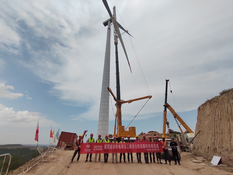 5月16日,陕西延安风电项目二期工程首台风机整机顺利吊装完成。