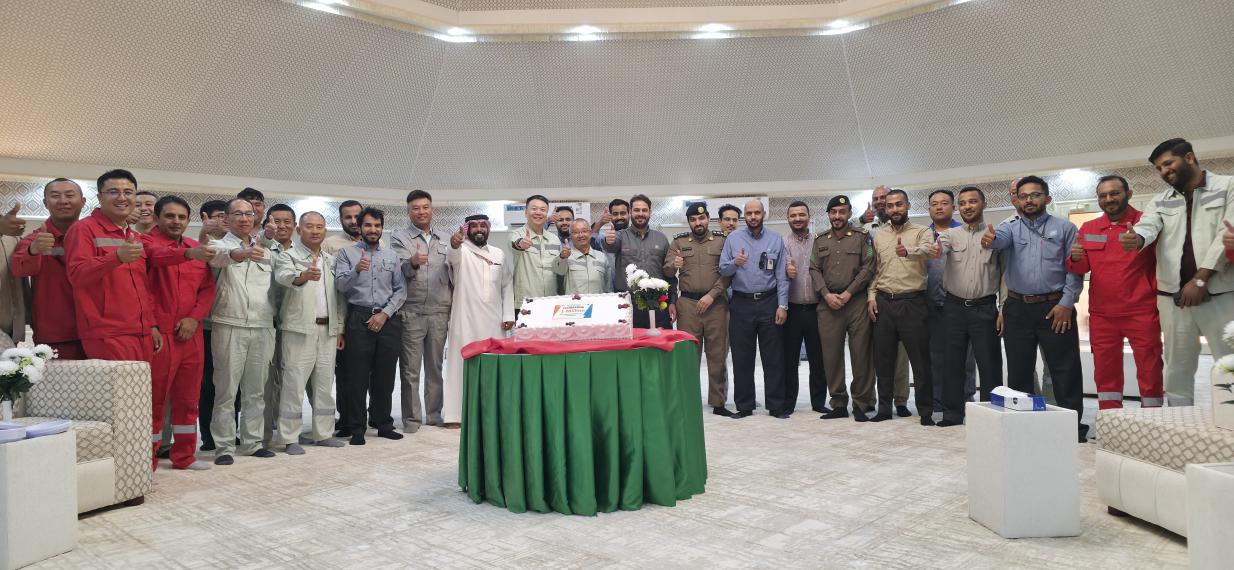 仪式上,沙特阿美对项目部在安全体系建设、作业现场管理和全员安全意识提升等方面采取的扎实举措给予高度评价,充分肯定了项目部在推进安全文明施工、保障项目高质量、高水平推进方面取得的成绩,并向项目全体人员表达了诚挚感谢。随后,沙特阿美为项目部颁发“一百万安全工时”奖牌,并与项目负责人共同向在安全管理工作中表现突出的中外籍优秀员工颁发荣誉证书。