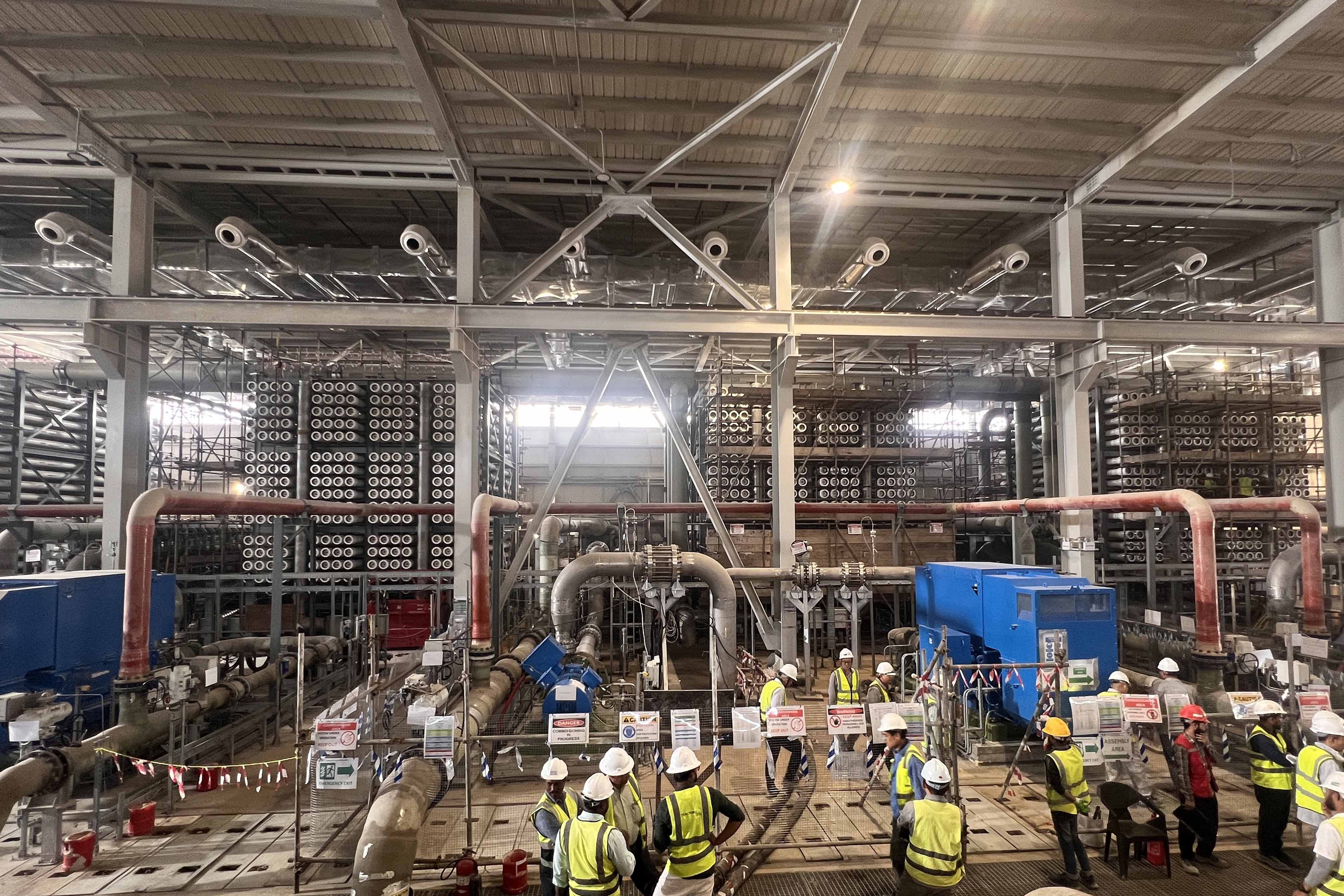 当地时间10月21日20时38分,随着第一股清澈的产品水从管线上稳稳流出,沙特贾富拉海水淡化项目顺利实现首次产水。这一重要节点的实现,充分验证了系统设备的整体匹配性和运行稳定性,标志着主工艺系统运行取得实质性突破。