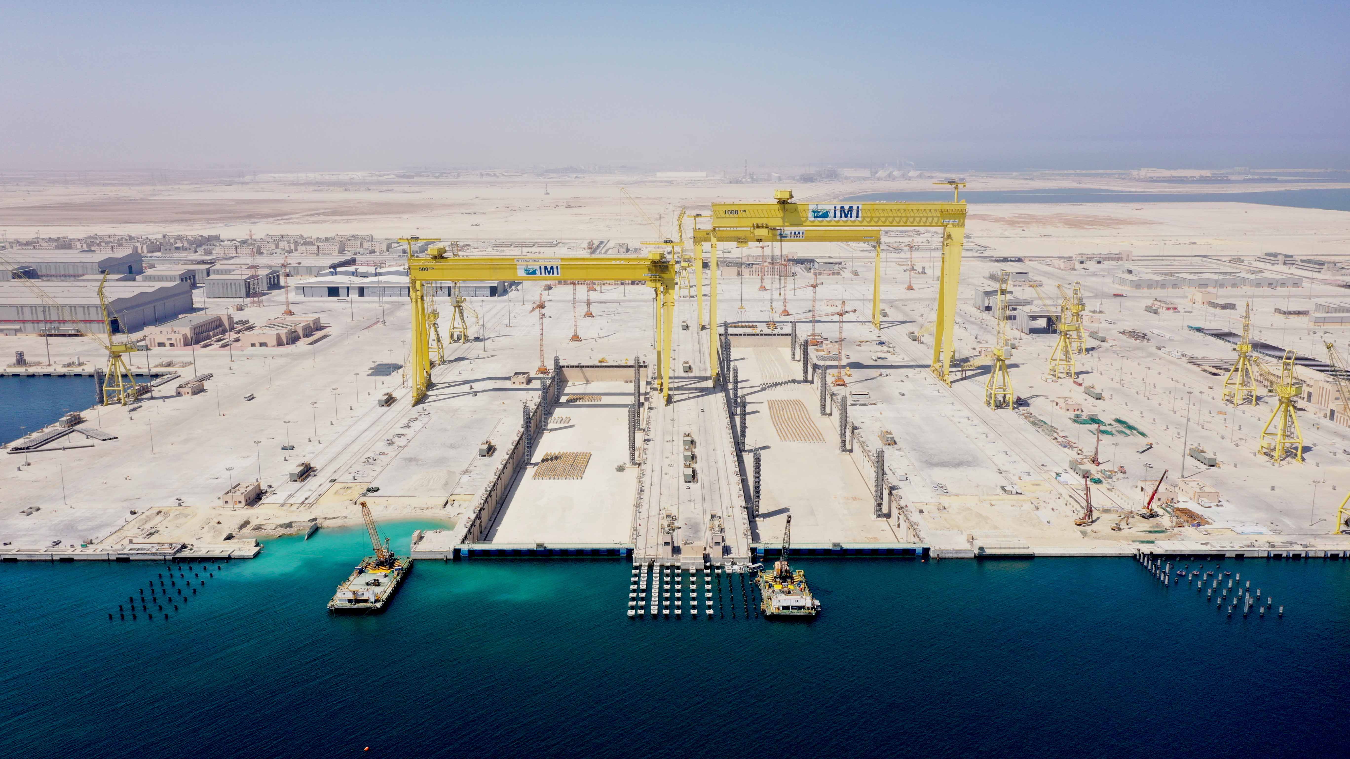 沙特国王港项目5号干船坞是各类船舶组装、下水、维修的场所,长400米、宽75米、深13.8米,是中东地区最大干船坞之一,坞内最大可建造9万吨VLCC超级油轮,其长度还可容纳两艘船同时建造。